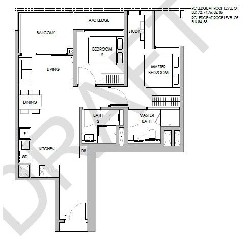 | 2 Bedroom + Study (P) | 732 - 754 | 136 |