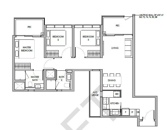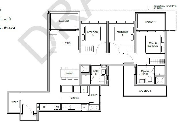 | 3 Bedroom (P) | 1023 - 1055 | 56 |