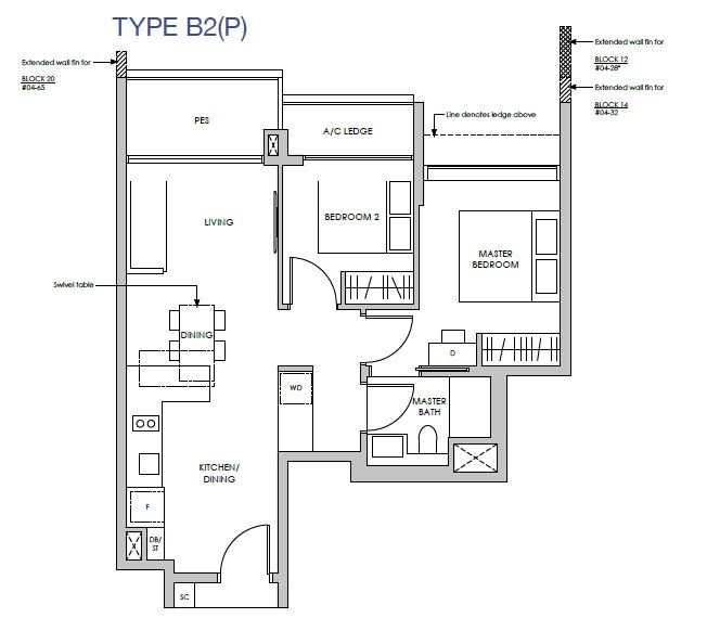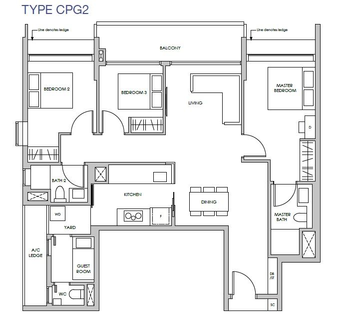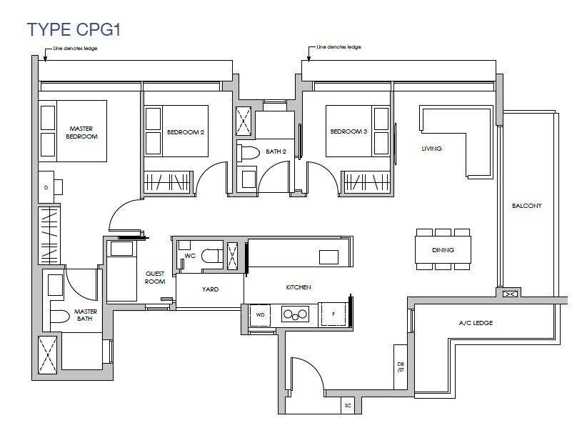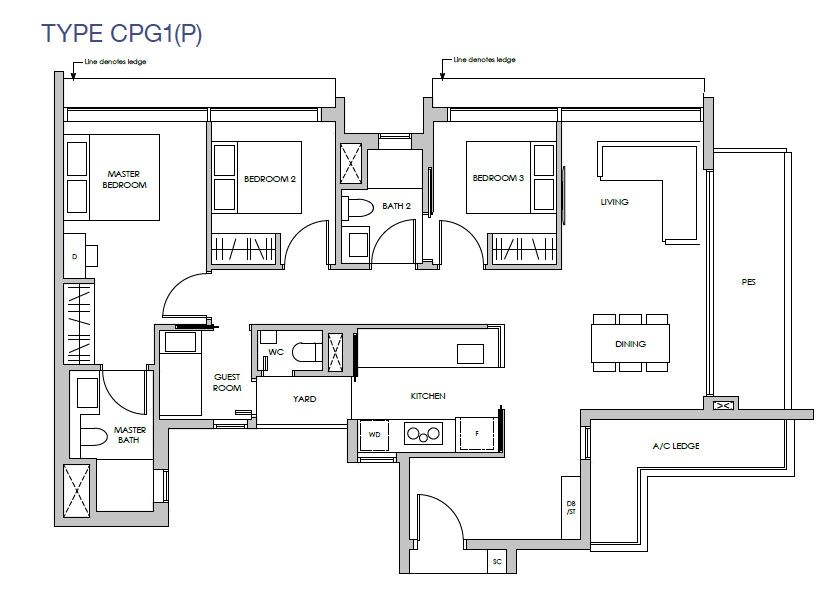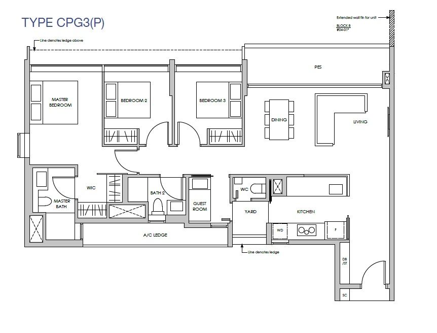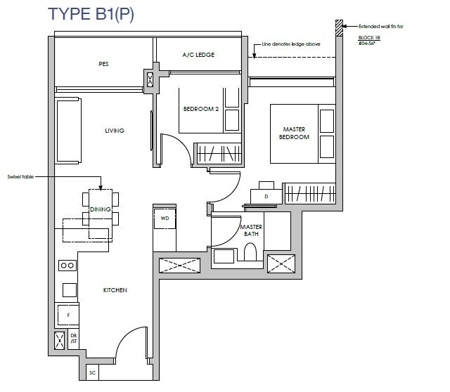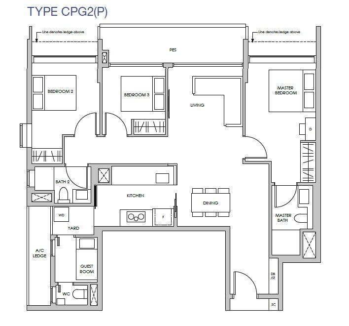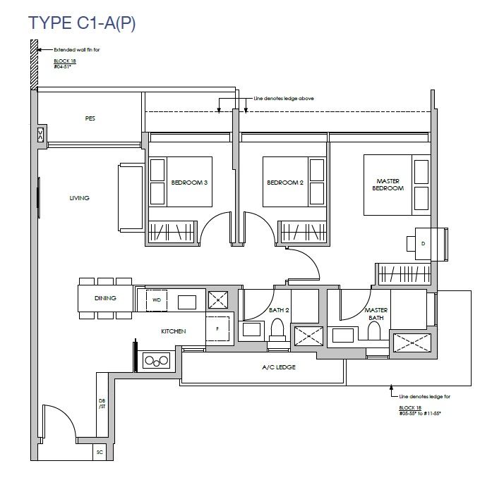 | 3 Bed + Guest (P) | 1259 - 1302 | 74 |