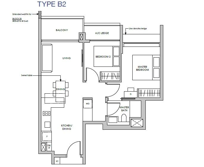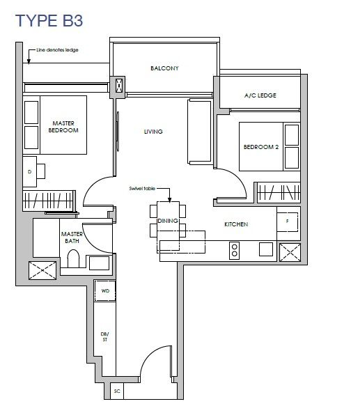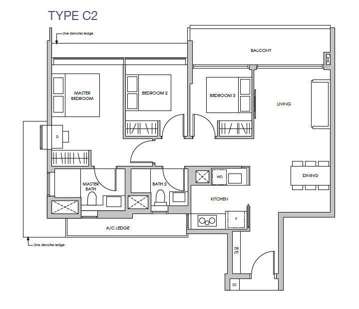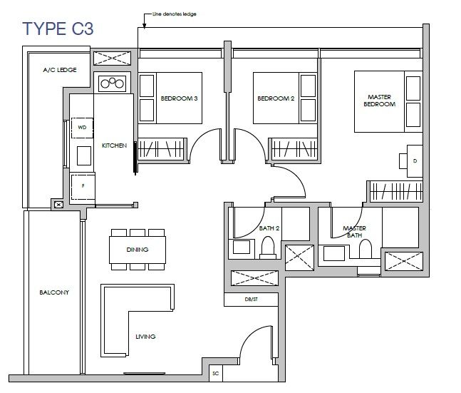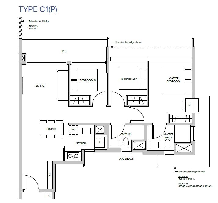 | 3 Bedroom | 1023 - 1066 | 72 |